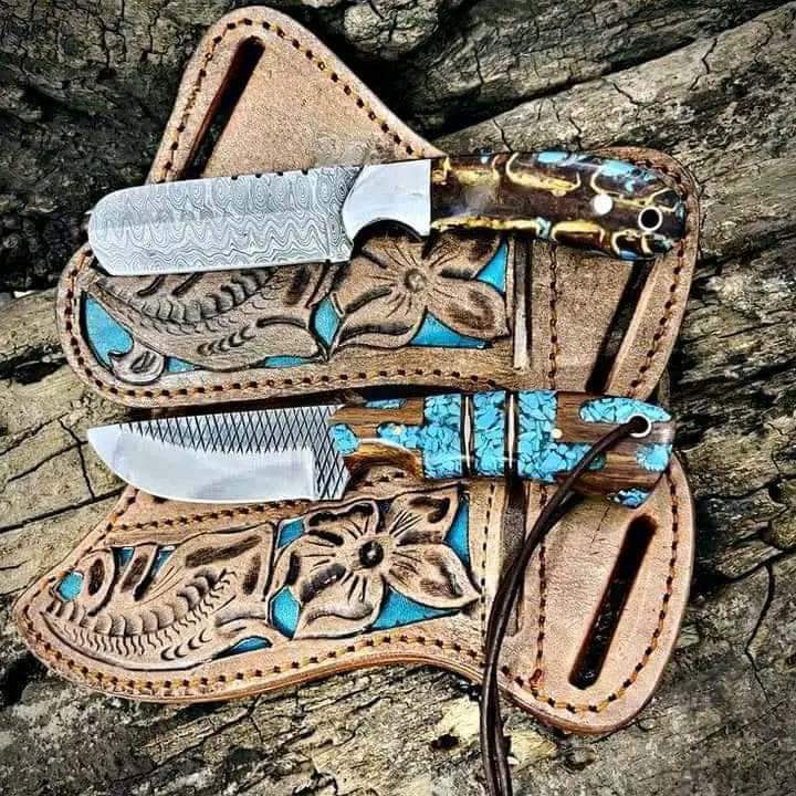 Special offer Buy 1 get 1 Free Custom Handmade Damascus Steel and Horse Rasp Steel Cowboy Skinner Knife and Bull Cutter set…
