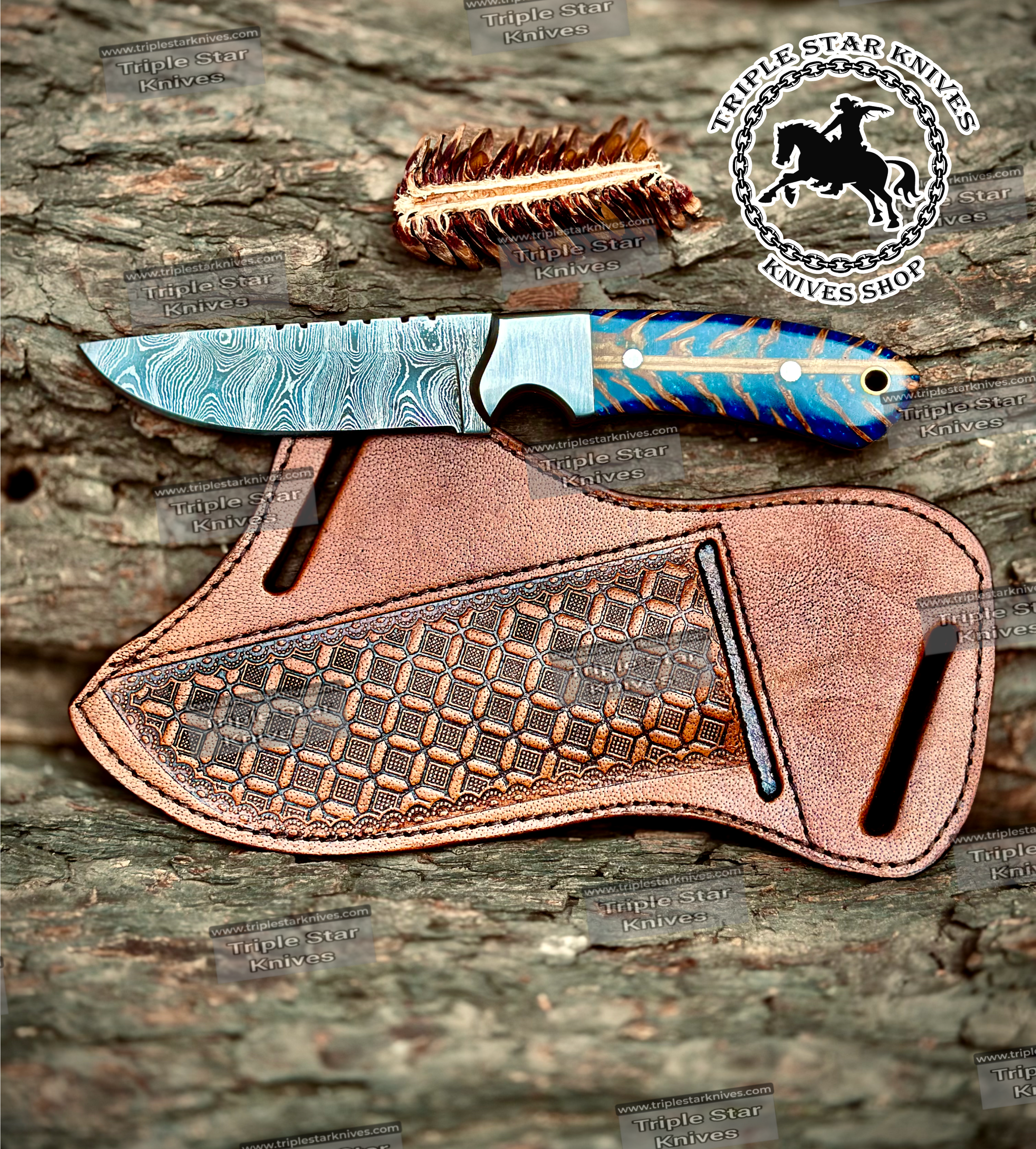 Custom Handmade Damascus Steel Western Cowboy and Skinner knives set.